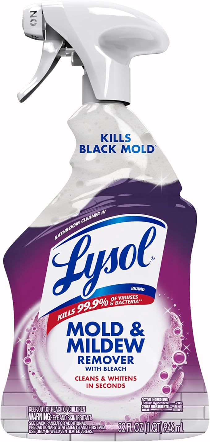 Lysol Mold & Mildew Remover Spray, Bathroom & Shower Cleaner, Disinfectant Spray, Stain Remover with Bleach, Tough on Black Mold, Multipurpose Cleaner for Home and Kitchen, 32oz