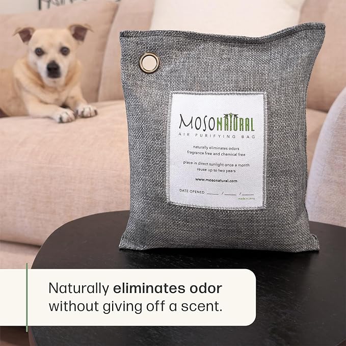 - Home & Pet Odor Eliminator: The Moso Natural Bamboo Charcoal Air Purifying Bag works like a magnetic sponge to actively absorb bad smells from the air without giving off a scent.