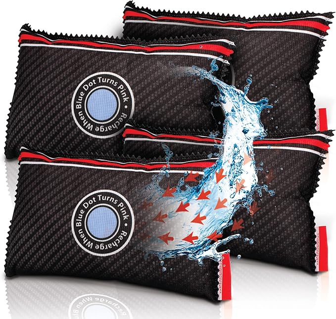 - AMPLE CAPACITY: Our dehumidifier bags come in a set of 4. Our moisture absorbers for cars and other vehicles are a substantial size of 299g, equipped with a larger capacity for bigger vehicles and boats. The dehumidifier bag can be stored anywhere in the vehicle or boat, and if desired, can be easily concealed and will still operate effectively even if out of sight.