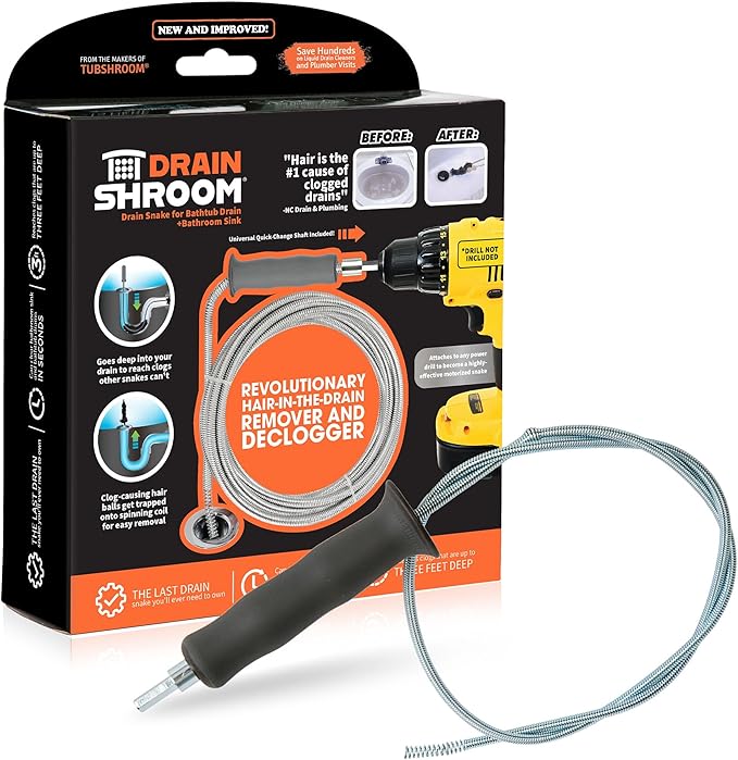 - Hair is the #1 Cause of Clogged Drains. DrainShroom attaches to any Power Drill (sold separately) to go Deep Into Your Clogged Drain to Clear those Nasty Hair Balls