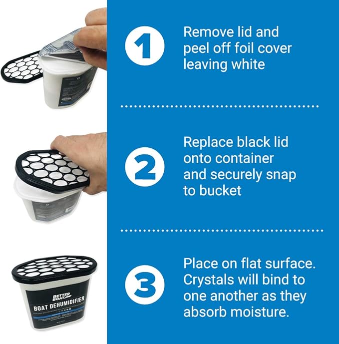 - ABSORBS EXCESS MOISTURE: Our marine dehumidifier absorber eliminates water from the air to keep things dry and fresh. Gets rid of unwanted smells and control moisture for a damp boat cabin and other spaces that need humidity control.