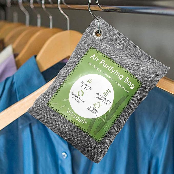 - DISPERSED ALL OVER FOR FULL FRESH AIR: Charcoal air freshener has an adsorption circle around itself, and the adsorption capacity will decrease by distance. So place charcoal bags in different directions can expand the nature adsorption range in large space and achieve rapid purification. Perfect as pet odor eliminator, basement odor eliminator, smoke odor eliminator. We recommend at least 2-4 packs of 150g or 200g bamboo odor remover bags to eliminate odor in the cars, closet, bathrooms, etc