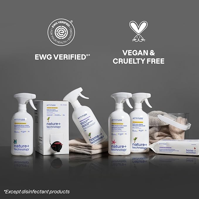 ATTITUDE Bathroom Cleaner Spray, EWG Verified, Plant-Based & Vegan, Safe for Bathroom Surfaces, Tiles, Tubs, Shower Walls, and Grout, Unscented, 27.1 Fl Oz