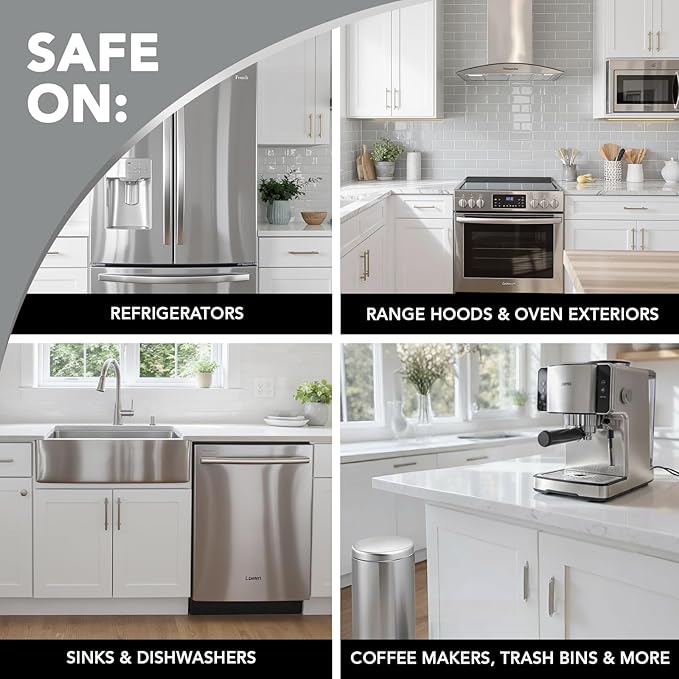 - For use on: Stainless steel refrigerator, microwave, oven, stove, grill, sink, range-hood & trash cans