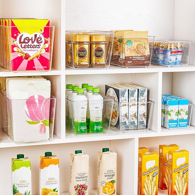 - Make Storage More Simple — These clear storage bins are versatile enough to fit easily in your fridge, refrigerator as well as pantry shelves, and cabinets, make your storage easier and help to keep your refrigerator, fridge and pantry look neat and organized.