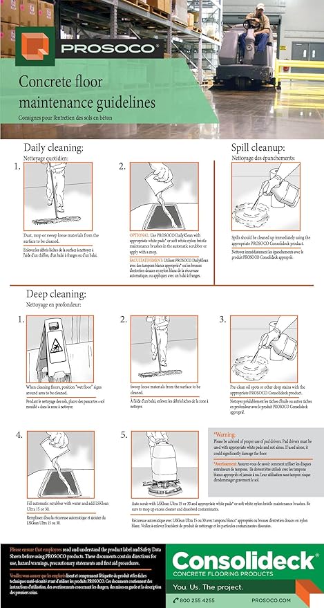 - Maintains concrete floor hardness and shine, while removing most common soiling.