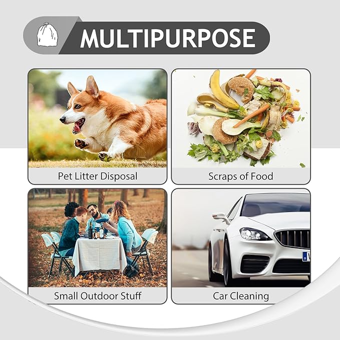 - MULTIPURPOSE: This bag is designed not only for indoor use (for office, kitchen, living room, bedroom, bathroom, diaper disposal, paper shredder etc) but also for outdoor applications (cat litter, dog waste, car trash etc).