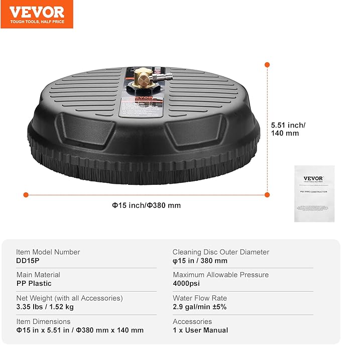 - φ15 Inch Fast and Efficient: With a high flow rate of 2.9 gallons per minute, it ensures even cleaning, leaving no inch of the ground untouched. Whether it's a large-scale task or everyday cleaning, the φ15-inch cleaning disk can handle it with ease. Enjoy efficient cleaning that saves you time and effort.