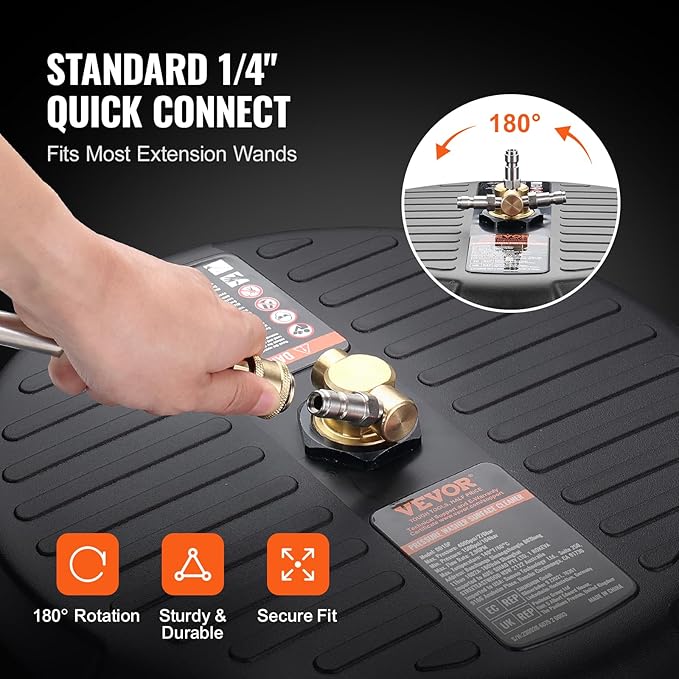 VEVOR Universal 15" Pressure Washer Surface Cleaner, Pressure Washer Attachment 4000 Max PSI, 1/4" Quick-Connect Connector Concrete Cleaner, Heavy Duty Power Washer for Floor Driveway, Patio,Sidewalk