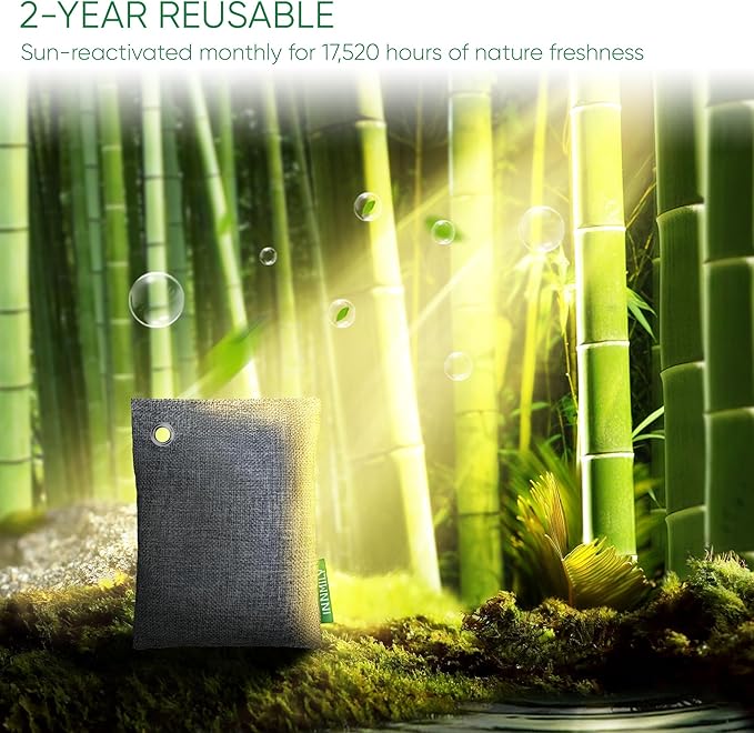- 2 YEARS CONTINUOUS FRESH AIR - Revel in 17,520 hours of natural deodorizer odor eliminator! A simple monthly sunbath recharges the bags, making them a cost-effective choice for your pocket and a compelling one for the planet. activated charcoal air purifiers for bedroom and drawer deodorizers are also various for any space that need deodorizer, we recommend use multiple quantities for maximum deodorizing impact as mildew smell eliminator and smoke smell eliminator for home