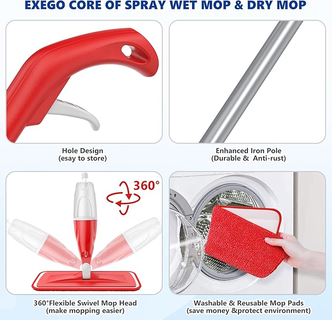 Spray Mops for Floor Cleaning: EXEGO Wet Mop with 3 Washable Microfiber Pads for Swiffer Powermop - Floor Flat Mop Dust Dry Nops for Hardwood Tile Wood Laminate Vinyl Marble - Home Commercial Mop