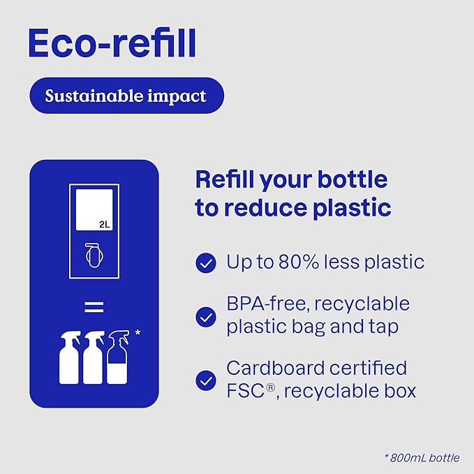 - ECO-FRIENDLY REFILL: This mirror cleaner refill comes in FSC-certified, recyclable cardboard—designed to reduce plastic waste. Refill your bottles again and again for a more sustainable, low-waste cleaning routine.