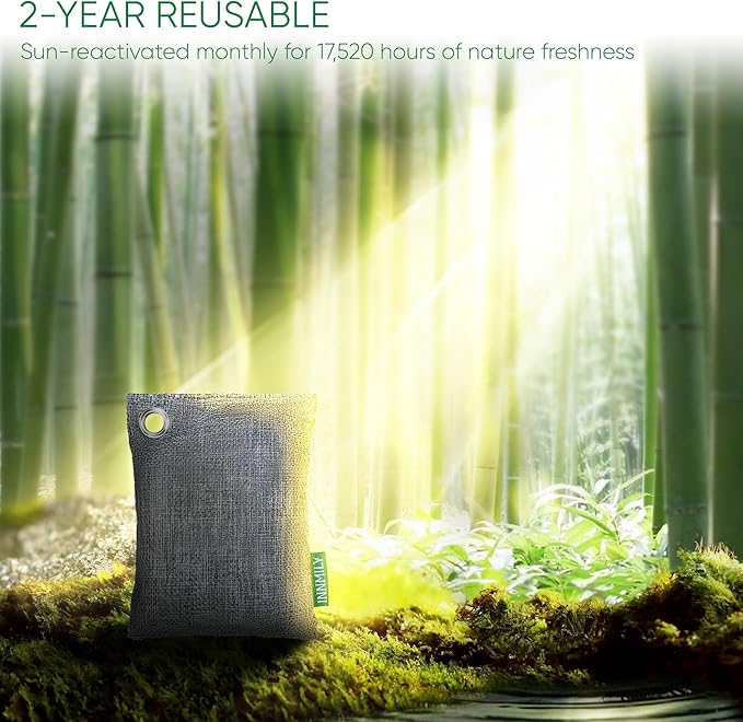 - ENJOY 2 YEARS OF FRESHNESS - Benefit from 17,520 hours of natural odor absorber! Simply recharge the bags monthly with sunlight, making them a budget-friendly and eco-conscious choice. Suitable for bedrooms, drawers, and any space needing deodorization. For maximum impact, use multiple bags to eliminate smoke and other stubborn smells effectively. Great pet odor eliminator for home and room deodorizer odor eliminator