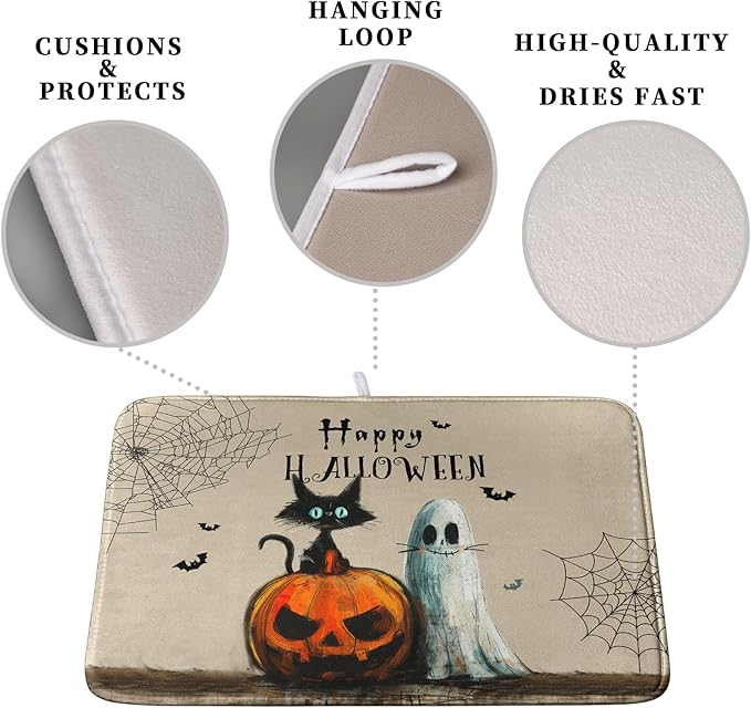 - 【Ultra Absorbency】The surface of the halloween dish drying mat is made of absorbent microfiber and the middle is made of composite sponge, absorbs 4X its weight in water, keep your counter dry. Absorbent, Colorful, Reversible, do not fade.