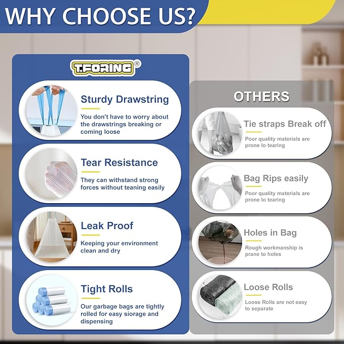 - 【Customer Satisfaction】 At T.FORING, our customers are like family. If you have any questions or concerns about our 6 gallon trash bags, our friendly customer service team is here to help. Your satisfaction is our top priority.