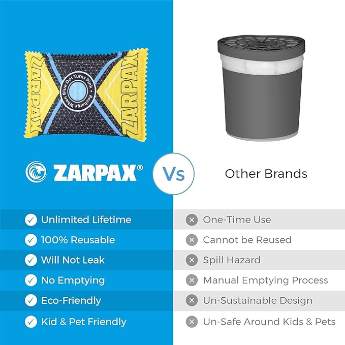 - 100% LEAK PROOF: For a completely moisture-free, damp-free car or home, select ZARPAX's humidity absorber. Our reusable dehumidifier contains silica that seamlessly eliminates condensation and moisture from the air creating and maintaining an incredibly fresh environment! The moisture absorber is 100% leak proof meaning you will never have to contend with leaks, only a fresh environment.