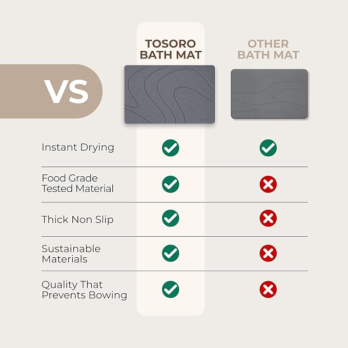 - LUXURIOUS AND FUNCTIONAL: Elevate your bath mats for showers with Tosoro Bath Stone Mat. Designed to bring the perfect balance between innovative, sophisticated spa-like design and utility to your home.