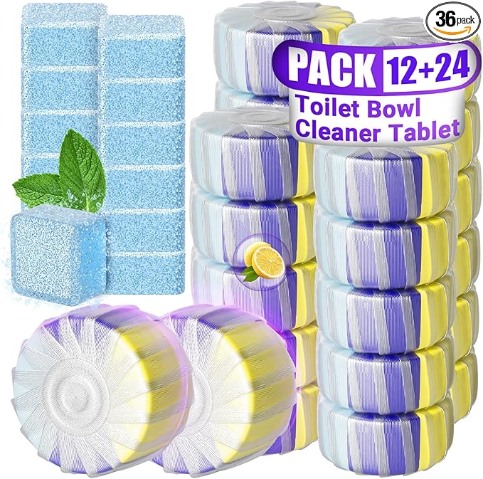 36 Pack Toilet Bowl Cleaners, 24PCS Upgraded Triple Effect Toilet Bowl Tablets with 12PCS Toilet Tank Cleaners Tablets with Bleach, Toilet Bowl Cleaners Drop in Tank, Lasting Fragrance(36 Pack)