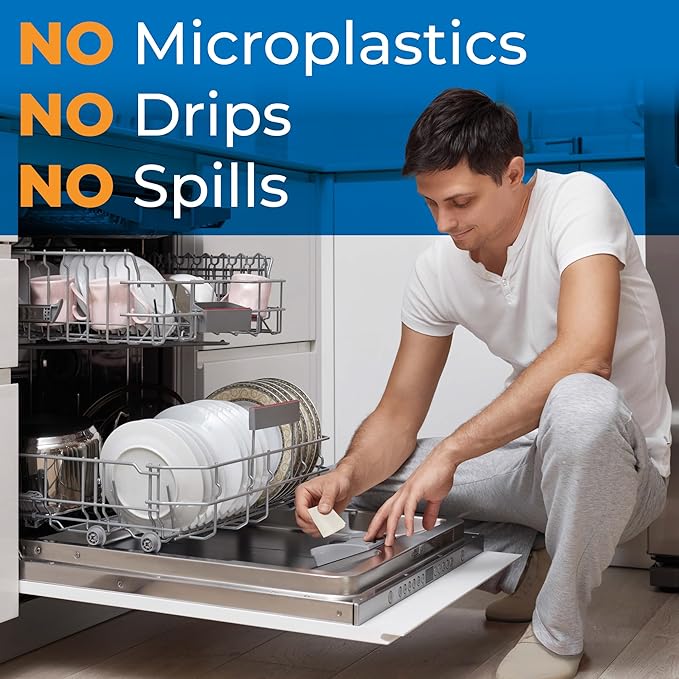 - Mess-Free & Easy-to-Use Solution: Ditch the spills and sticky messes of liquid detergents and the microplastic waste from pods! Just one lightweight sheet offers effective, eco-friendly cleaning for a spotless finish. Plus, save time and money by subscribing - never run out of clean again with Amazon’s Subscribe & Save!