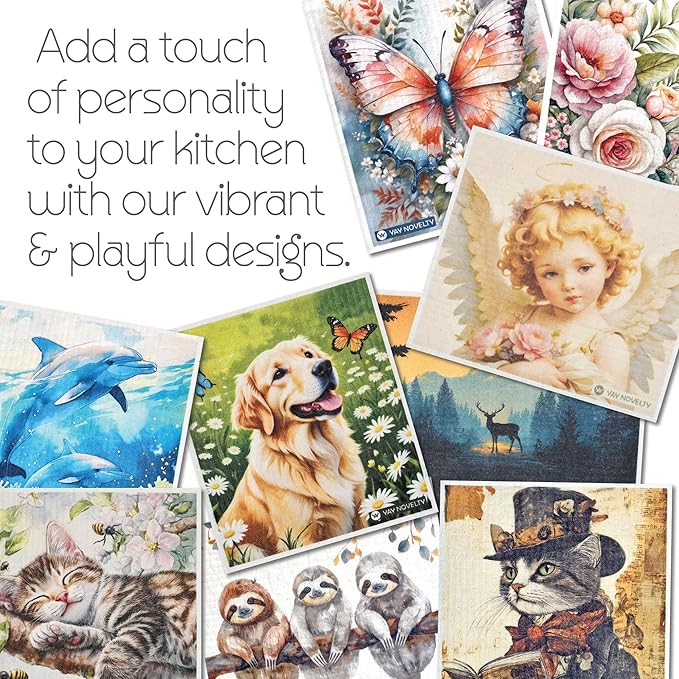 - Add a touch of personality to your kitchen with the vibrant and intricate playful designs of Swedish dishcloths. This 12-pack includes four unique designs, with three cloths per design.
