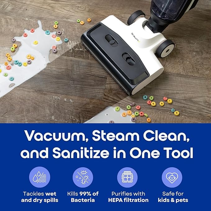 - MULTI-SURFACE VERSATILITY! Dive into the convenience of handling multiple cleaning tasks with a single device; whether dealing with liquid spills, dust, or sticky messes, this versatile appliance does it all. Experience the joy of reduced cleaning stress, freeing up precious moments to spend on more meaningful activities with loved ones.