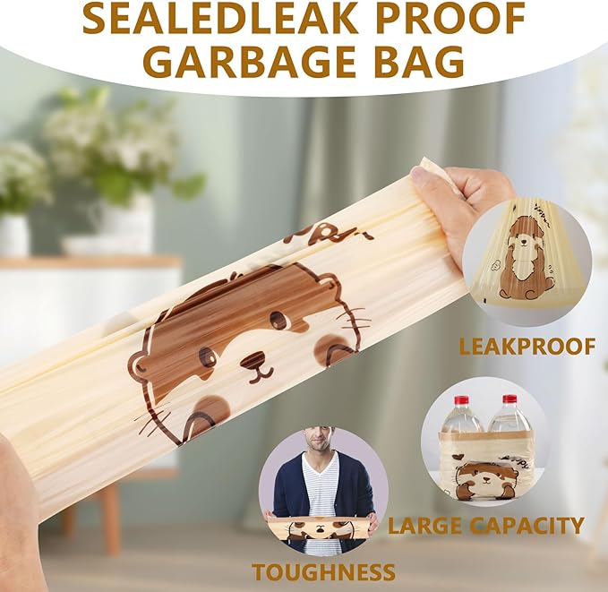 - 🦦【Cheerful Otters Print for Daily Happiness】Brighten your space with 8 gallon trash bags featuring adorable otters! Unlike plain medium garbage bags, these cute trash can liners turn chores into smiles—perfect for kitchens, bathrooms, or kids’ rooms. Beauty meets utility!