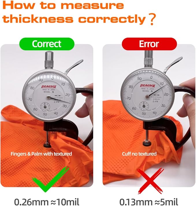 - RUGGED 10 MIL NITRILE, TEAR-RESISTANT - Are you still searching for durable nitrile gloves? With a thickness of 10 mil, these gloves are 2-3 times thicker than standard disposable nitrile gloves and offer 50% greater puncture resistance. The diamond texture on these nitrile gloves ensures a secure grip surfaces