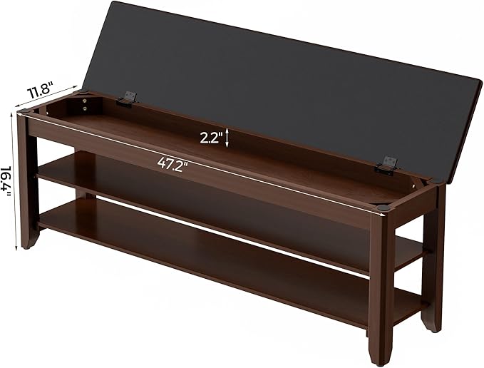 Shoe Rack Bench with Flip-Top Storage, Solid Wood Entryway Bench with Cushion, Adjustable Shelf, for Hallway, Mudroom, Closet – Walnut, 47.2"