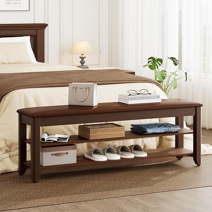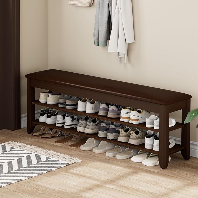 - Comfort and Durability: The padded artificial leather cushion provides a comfortable spot to sit while putting on or taking off shoes. Built from solid wood, this bench is sturdy and designed to last for years.