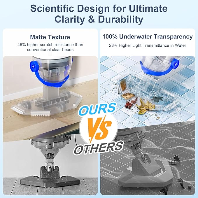 (2025 Upgraded) Cordless Pool Vacuum with Telescopic Pole, 60 Min Powerful Suction & Transparent Head, Rechargeable Handheld Cleaner for Above Ground Pools, Inground Pools, Hot Tubs and Spa