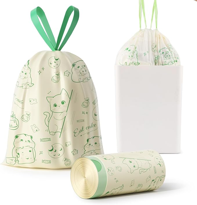 - 【CONVENIENT DRAWSTRING HANDLES】 Featuring a quick-tie design, these small drawstring trash bags allow you to close them without touching the bag. The strong drawstring provides a tight grip on trash cans, so your hands will stay clean, making your life more organized.