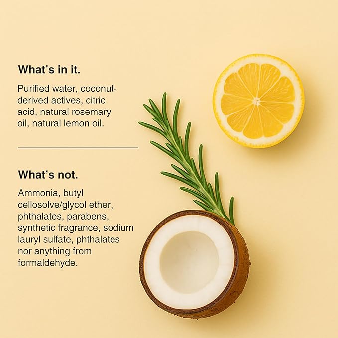- Natural Cleaning Power – Made with coconut-derived actives and infused with natural rosemary and lemon oils for a safe, effective clean you can trust.