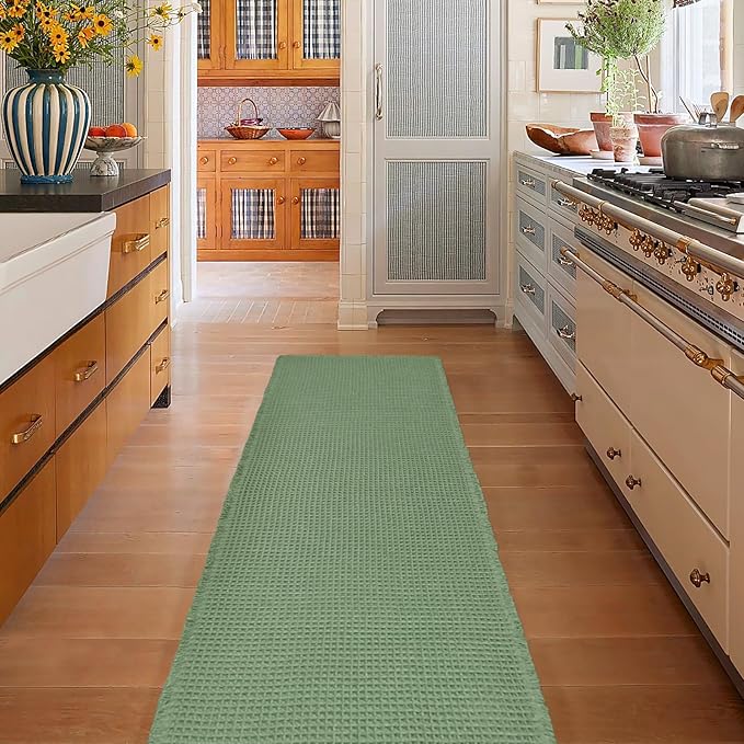ZALL Waffle Bath Mat,Super Absorbent Non Slip Bathroom Rug,Sage Green 24X60inch,Machine Washable Ultra Soft Floor Mats