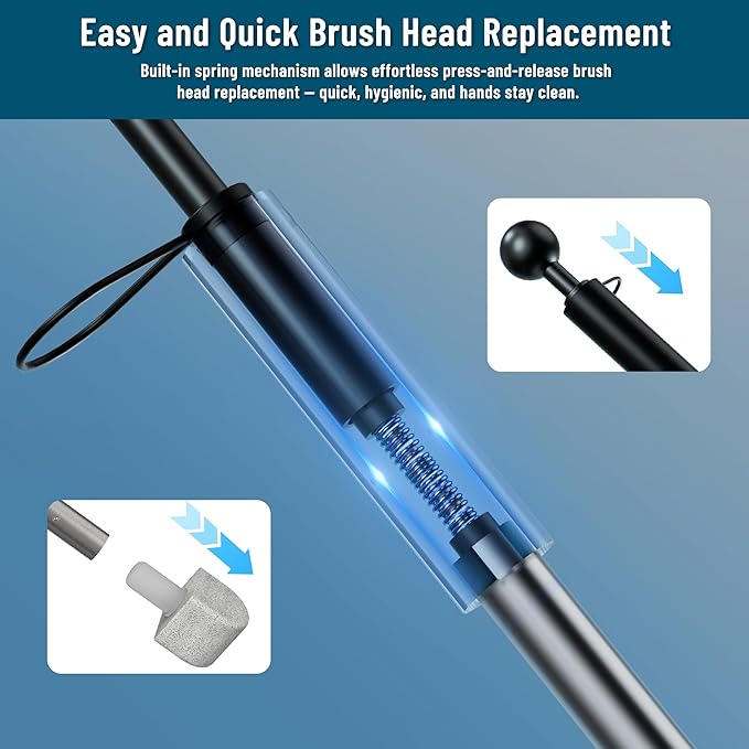 - [Easy Attach/Disposal]---The disposable toilet brush refills easily attach,and eject for disposal by simply pushing the sphere at the top of the wand.