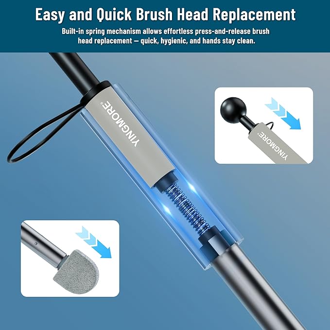 - [Easy Attach/Disposal]---The disposable toilet brush refills easily attach,and eject for disposal by simply pushing the sphere at the top of the wand.