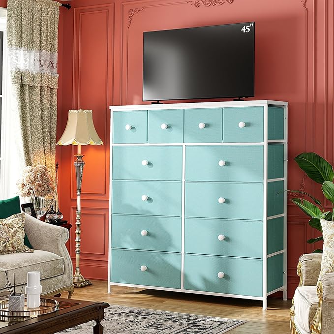 Dresser for Bedroom Drawer Organizer Storage Drawers, Fabric Dressers & Chests of Drawers, Sturdy Metal Frame, Wood Top, Entryway, Bedroom Furniture (Turquoise)