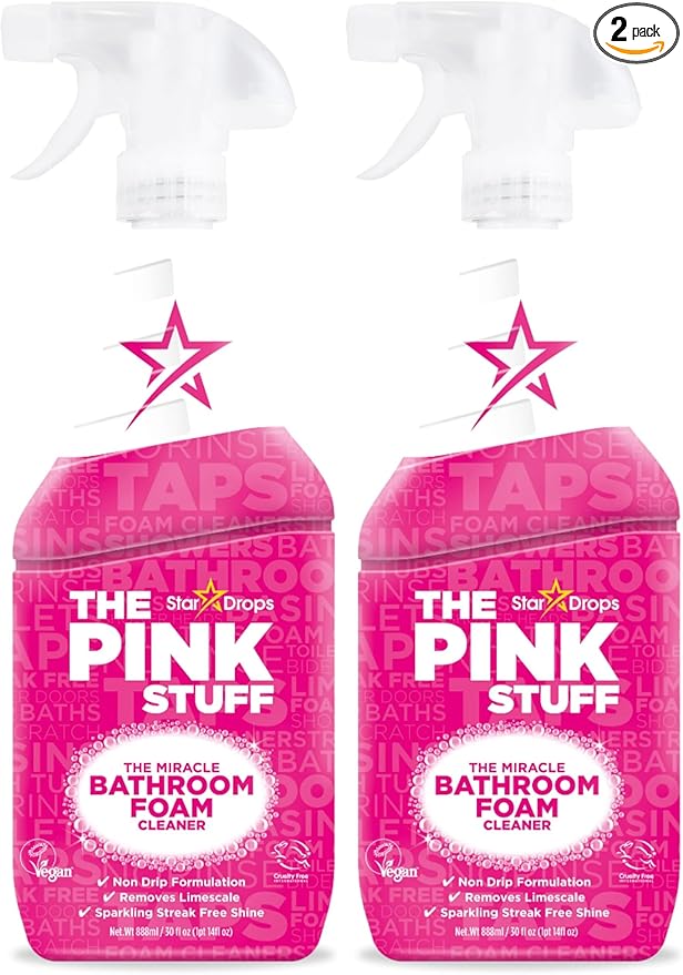 The Pink Stuff Miracle Bathroom Foam Cleaner, 30 fl oz – Now 20% More! Powerful Foaming Action for Showers, Sinks, Tubs & Tiles – Removes Soap Scum, Limescale & Grime with Ease (Pack of 2)
