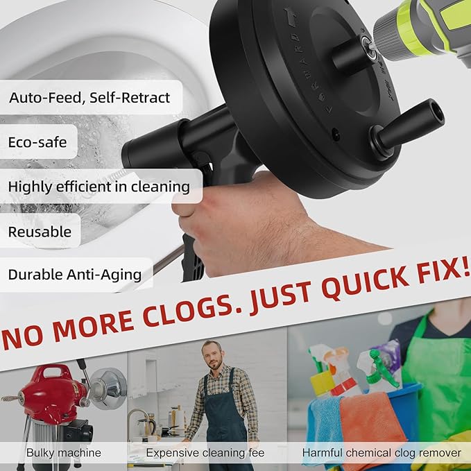 - Universal Deep Clog Fighter: From Main Lines to Toilet Drains: Conquer the toughest, deepest clogs in your home. This professional drain snake is engineered to cut through hair, soap, and grease in all common drains and deeper lines. Its extended reach makes it equally effective as a snake drain clog remover for main drains and a reliable toilet snake drain clog remover for deep obstructions, solidifying its place as your most versatile plumbing tool.