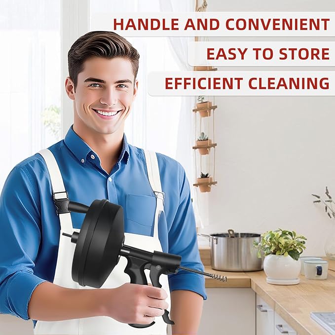 - Commercial-Grade Durability: Heavy-Duty Sewer & Toilet Snake: Built for demanding deep-cleaning tasks with a zinc-coated, rust-resistant cable and industrial ABS drum. This heavy-duty drain auger is engineered to perform as both a sturdy toilet snake and a capable sewer snake for lateral lines. Backed by a robust design for years of dependable service, it's your go-to plumbing snake for deep-pipe challenges.