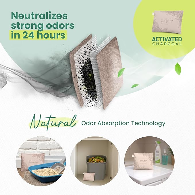 - 100% NATURAL & SAFE ODOR ABSORPTION – Our bamboo charcoal bags act as a powerful natural odor absorber, made from non-toxic materials and completely fragrance-free. A safe and eco-friendly solution for homes with kids and pets—no sprays, no chemicals.