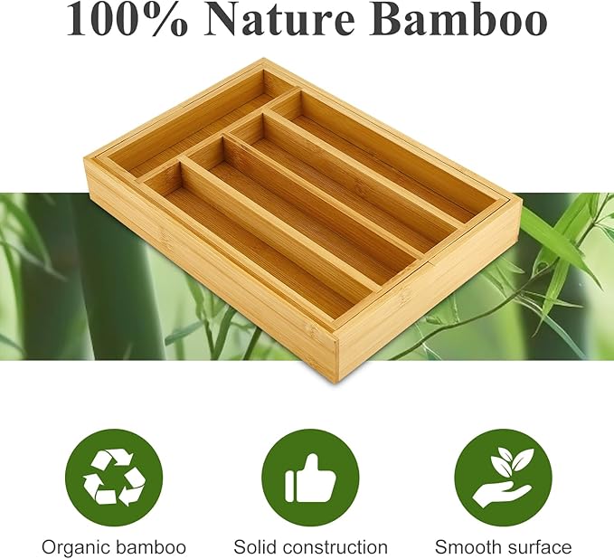 - RELIABLE DURABILITY: Crafted from high-quality bamboo, this bamboo drawer organizer is solid and well-constructed. Not only is it sturdy and difficult to damage, but it looks great and it's environmentally friendly.