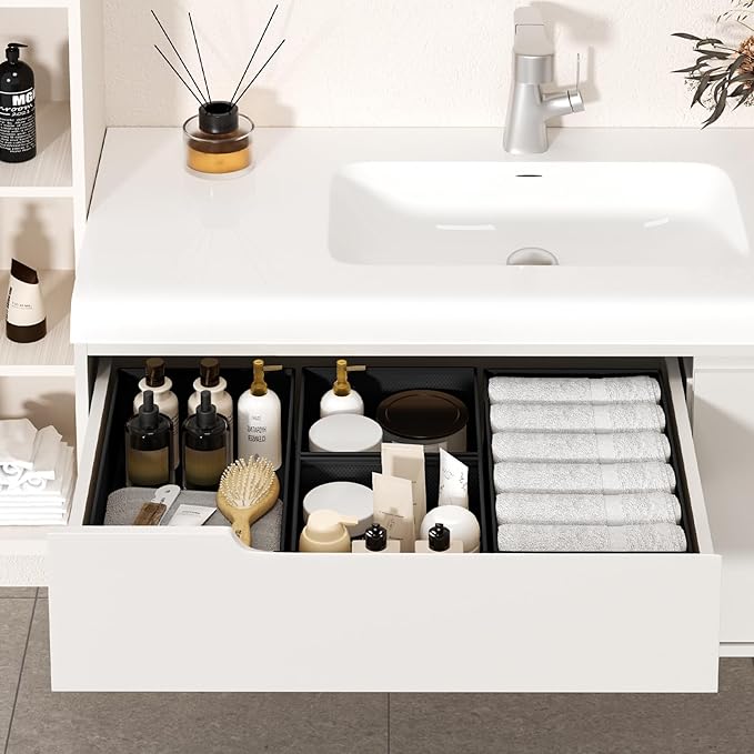 - Free Combination:This drawer organizer clothes set includes 3 large square boxes (11.8"x11.8"x3.54"), 11 medium containers (11.8"x5.9"x3.54") and 6 small bins (5.9"x5.9"x3.54"). A variety of sizes can be flexibly combined to meet different storage needs. The dresser drawer organizer can be freely configured in wardrobes and other spaces to achieve efficient and personalized classification and organization