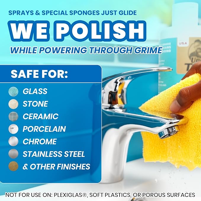 - Safe for Showers, Glass & More – Use on shower doors, tiles, tubs, toilets, sinks, chrome, and stainless steel fixtures. Leaves surfaces gleaming and streak-free.