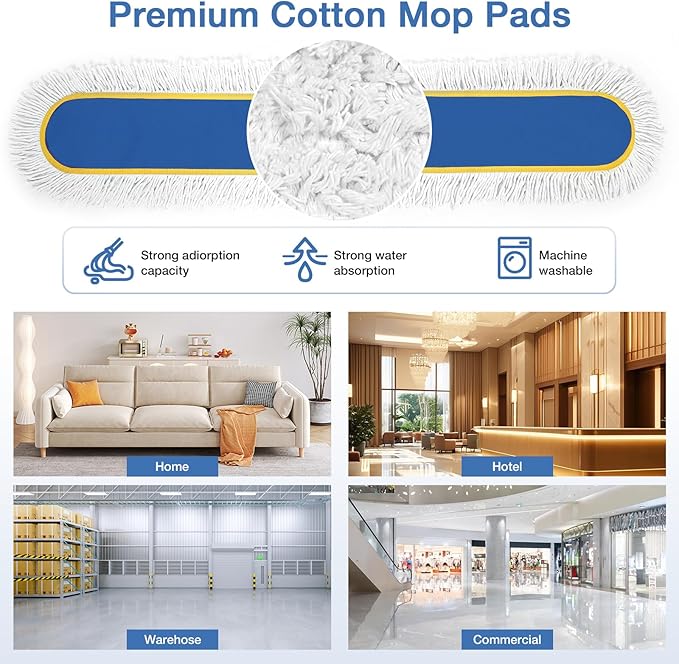 - 【Hght-Quality Cleaning】This floor dust mop pads is made from premium natural cotton yarn, Whether you’re dry sweeping or damp mopping,ensuring an excellent cleaning experience for hardwood, tile, and concrete floors so on.
