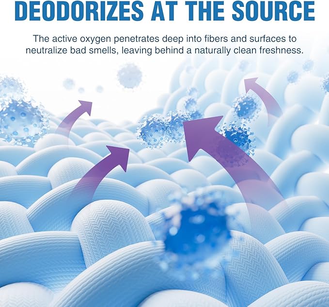 - Deodorizes at the Source:Eliminates odors from clothes, shoes, and fabrics without masking them. The active oxygen penetrates deep into fibers and surfaces to neutralize bad smells, leaving behind a naturally clean freshness.