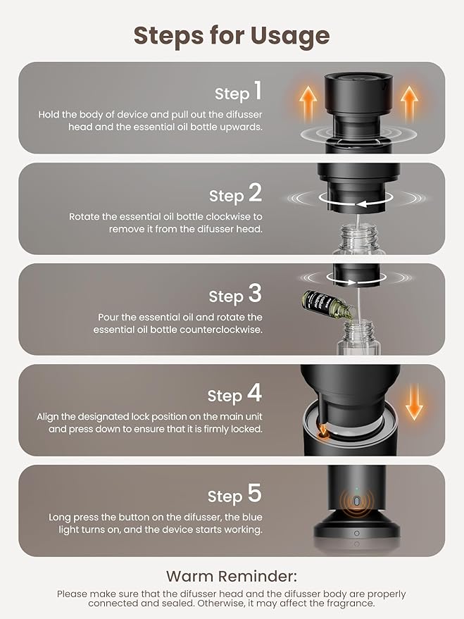 - 【Pets and Child-Friendly】Unlike traditional aromatherapy diffuser for home, this scent diffuser doesn't require water or heating, preserving the pure properties of precious essential oils and ensuring the mist is completely cool and safe for you to breathe. It's pet- and child-friendly. Includes 5 x 20ml bottles of high-quality essential oil.