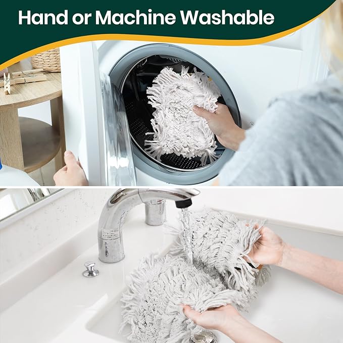 - 💚100% Cotton Floor Duster- The professional grade dust mops blended yarn produces an exceptional result when picking up dirt, dust, pet hair and debris from even the most stubborn places. Super absorbent, the mop can be used as wet mop or dry mop. Heavy duty stitching extends dust broom life, improves performance and launderability. Hand/machine washable