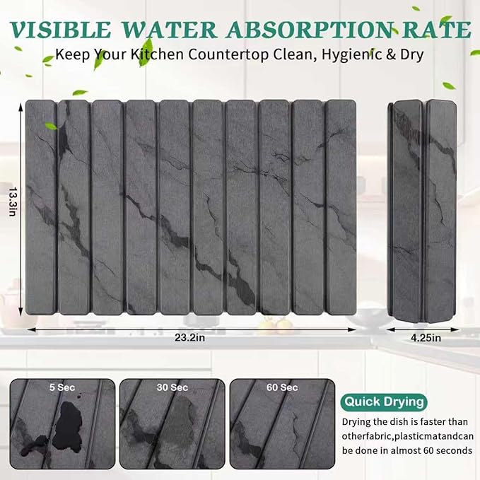 Stone Dish Drying Mat for Kitchen Counter, 24''×15'' Dishes Drying Matt Kitchen Counter, Absorbent Diatomaceous Earth Bath Quick Dry Mats for Tableware, Bottles and Cup(Dark Grey Marble)