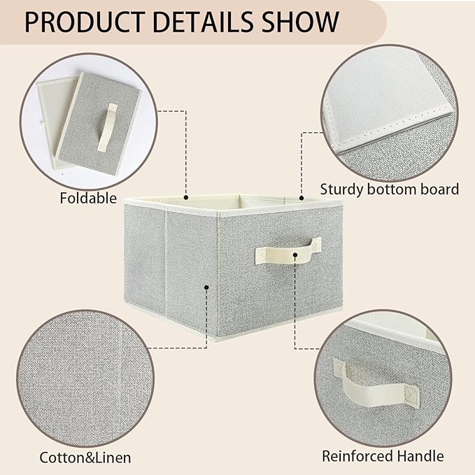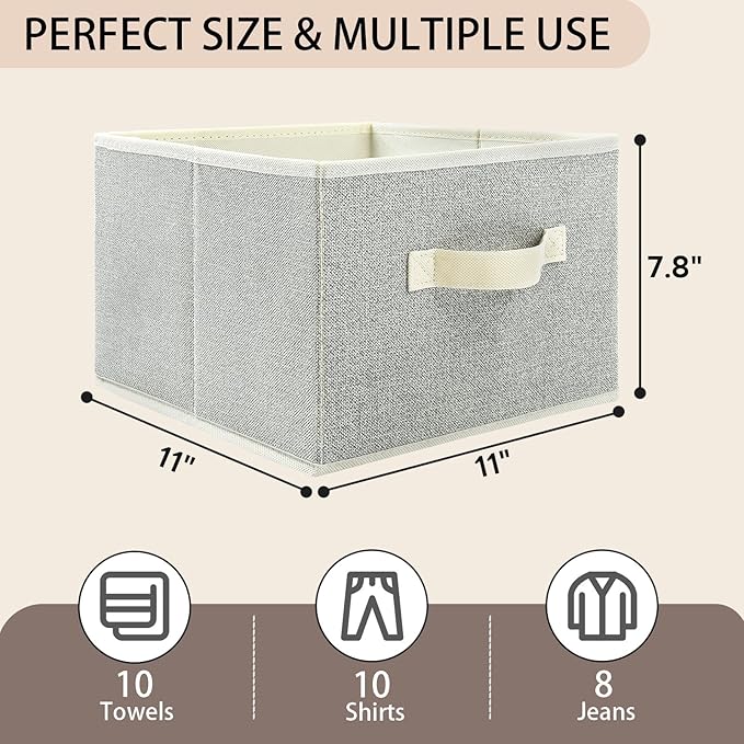 2 Pack Fabric Storage Baskets,11 inch Storage Cubes with Handles,Foldable Drawer Organizers Clothes for Shelves,Toys, Beige