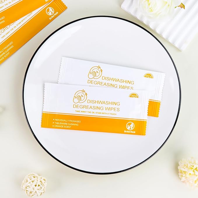 - Includes a Generous Quantity: Each package includes 50 pieces of individually wrapped wipes. size of wipe: 7.8 x 7 inch. For tableware and kitchen use. DO NOT FLUSH.